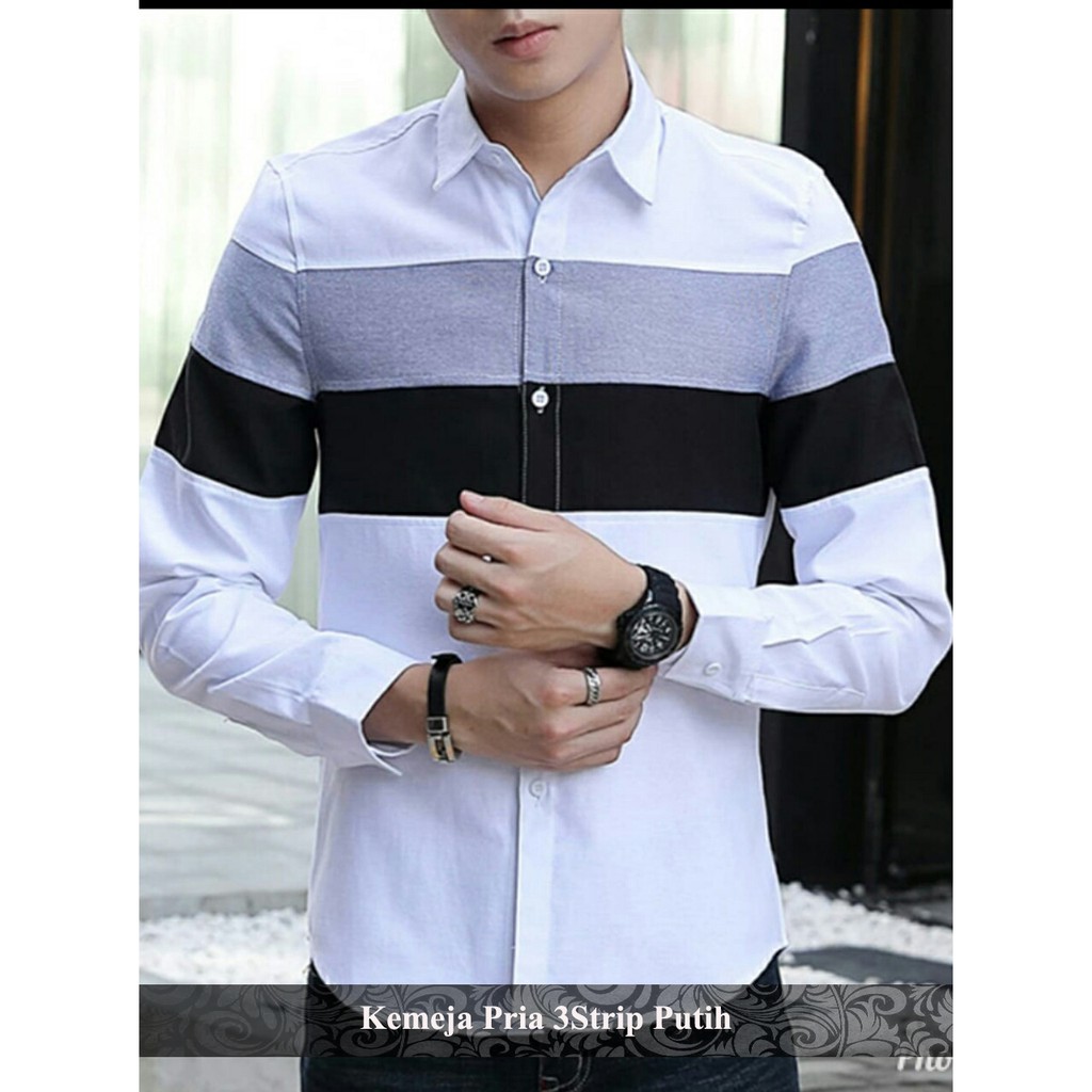 Baju Kemeja Belang Hitam Putih Lengan Panjang : Yexncbpi Xawm